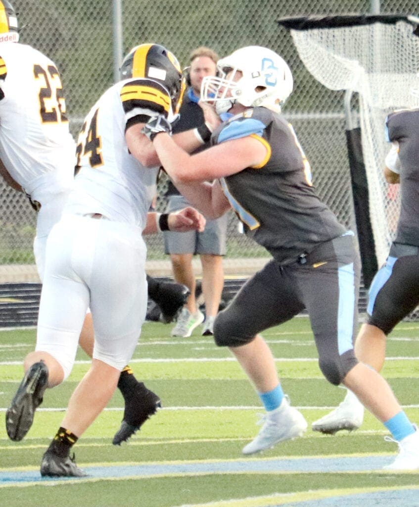 The Golden Bears took care of a power Keyser rushing attack Friday in New Manchester, holding the visiting Golden Tornado to 12 points in a 38-12 victory. Leading the way was senior and Kennedy Award candidate Hunter Patterson, who ran for 97 yards and two touchdowns and caught 11 passes for 200 yards and another score.