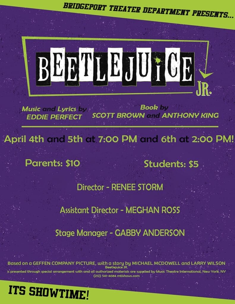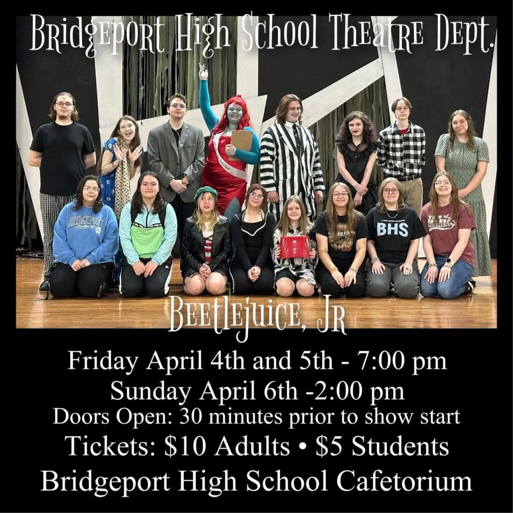 Bridgeport, OH — April 1, 2025 — Get ready for a hauntingly hilarious time as Bridgeport High School brings the weird and wonderful world of Beetlejuice Jr. to the stage! Based on Tim Burton’s beloved film and the hit Broadway musical, this kid-friendly adaptation promises laughter, thrills, and a whole lot of heart.