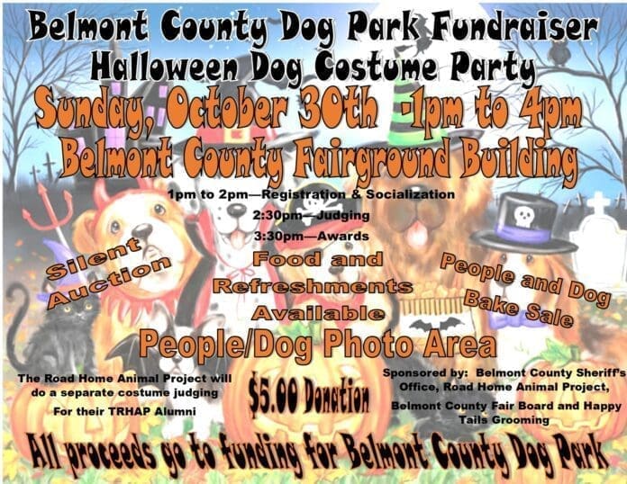 The Belmont County Dog Park Project, a joint venture between the Belmont County Commissioners, Sheriff David Lucas and The Road Home Animal Project, will be hosting the First Annual Halloween Costume Party and Parade for Dogs. This event will be a fundraiser for the dog park project and will be held on October 30 from 1 – 4 p.m. at the Belmont County Fairgrounds.