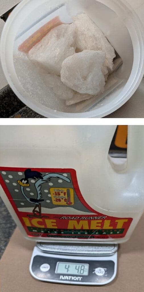 Detectives located the suspected methamphetamine being disguised as household rock salt. The suspected fentanyl was located concealed on Ms. Earich’s person.