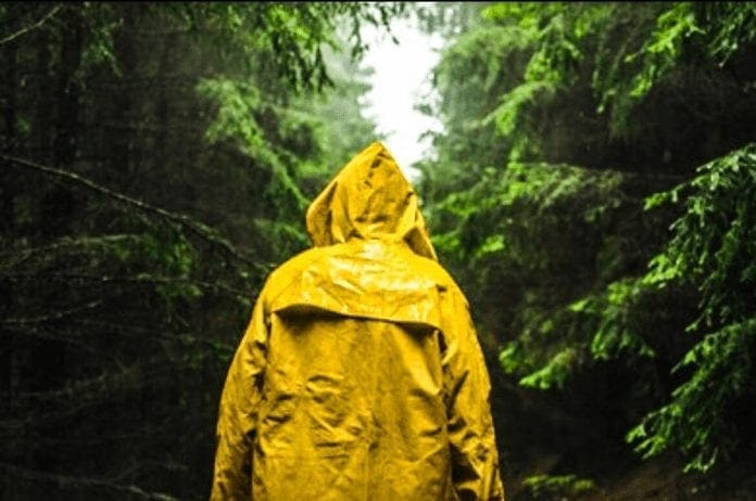 (Tommy goes back into the house and reemerges shortly wearing a bright yellow, rubber raincoat.)