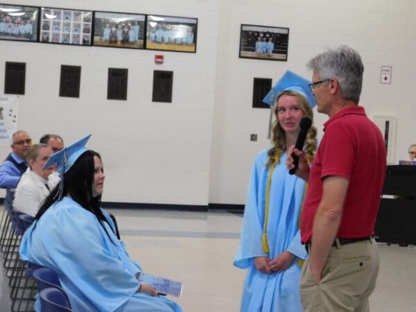 Rev. David Demarest of the First Presbyterian Church in Martins Ferry and the Rockhill Presbyterian Church of the Bellaire area interviewed attending graduates. Davis is heading to Marshall University to study medical imaging with the goal of becoming a mamotech. Josalyn Canter will study radiology at Belmont College.