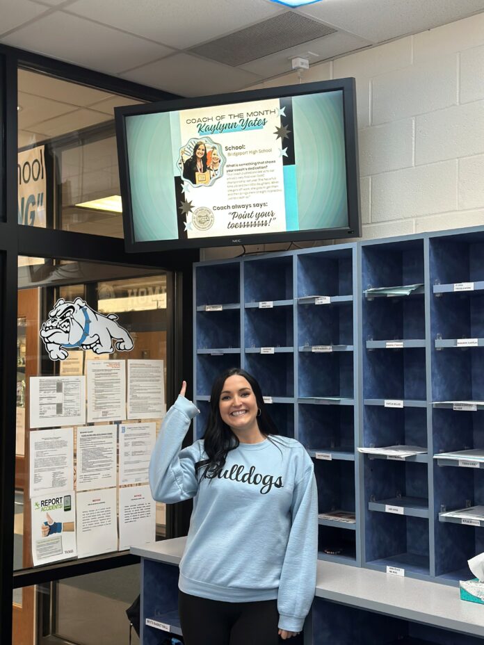 BRIDGEPORT – Bridgeport Exempted Village School District’s head cheerleading coach Kaylynn Yates has led her team to some impressive victories and she has earned statewide recognition from her peers. Yates has been named Coach of the Month by the Ohio High School Athletic Cheerleading Coaches Association.
