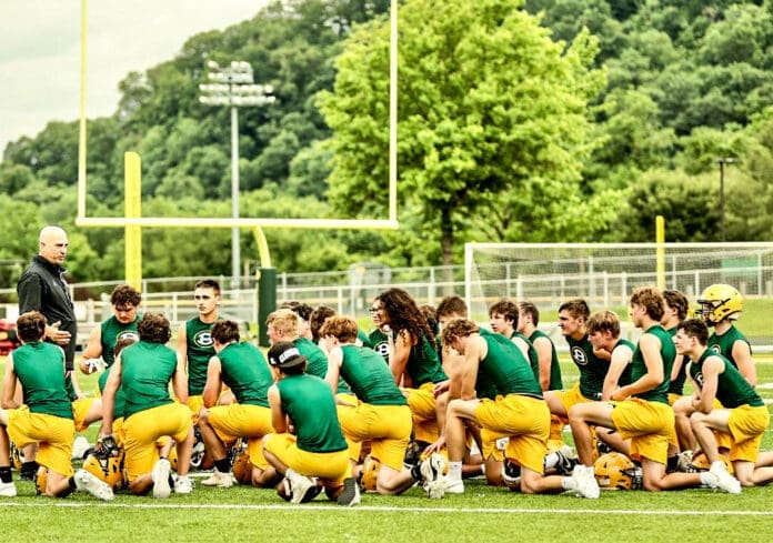 “We had the 50 kids on the high school level, but we also had 45 in middle school, and those numbers are a credit to the hard work Frank and his staff have been doing this summer. It also says a lot about the excitement there is for our football program right now,” he said. “Frank’s roots are here in Brooke County, and everyone is very excited that he’s come home to do what he does best.