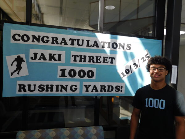 “He’s doing great this year. Leading his team,” he said. “His 1,000 yards rushing awesome. It’s a great feat. We’re super proud of him, but his most impressive traits are just his character, his leadership, not simply his athletic ability but also his ability to lead his team, and also his incredible influence in our building and our high school and the culture of the building.”