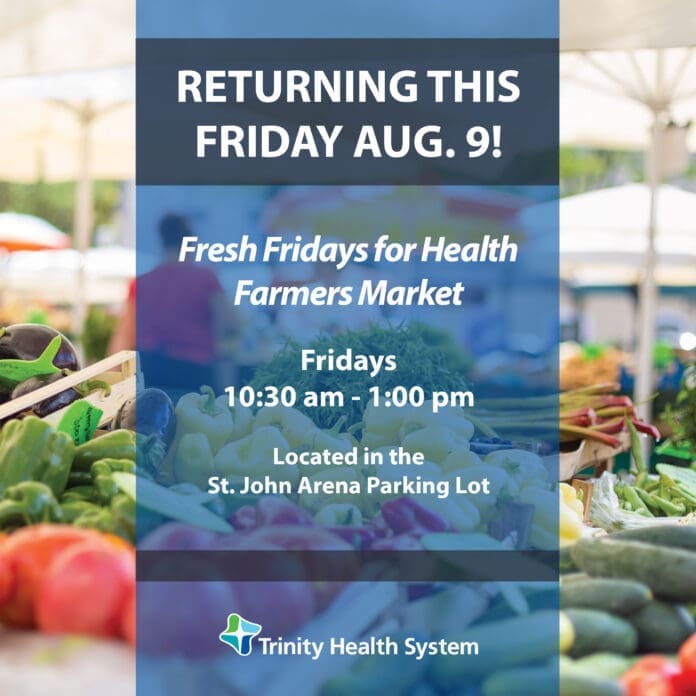 After a brief hiatus to accommodate the 2024 Johnson Road Improvement Project, Trinity Health System’s Fresh Fridays for Health Farmers Market returns to St. John Arena this Friday, Aug. 9, on the Trinity Medical Center West campus, located at 4000 Johnson Road in Steubenville, Ohio.