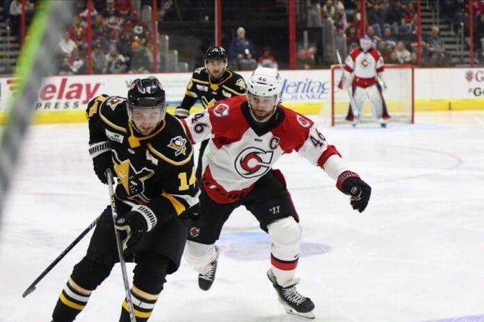 Justin Vaive tied the score for Cincinnati with a breakaway wrist shot up and under the crossbar 1:14 into the third, but the Nailers quickly dusted themselves off and went back to work to regain the lead. 11 seconds after killing a penalty, Wheeling netted the go-ahead tally. Cédric Desruisseaux came out of the box and touched the puck ahead to Dillon Hamaliuk, who cruised into the right circle, and drilled a shot through Lindbom’s legs. 2:58 later, the power play converted once more for a key insurance marker. Isaac Belliveau slid a pass into the left circle, where Jordan Martel clobbered home his second man advantage goal in three contests since joining the Nailers. Gauthier and the 8-for-8 penalty kill took care of the final 8:57 to preserve the 4-2 triumph.