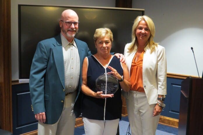 Superintendent Kimberly Miller and the Ohio County Board of Education lauded board member Christine Carder for her years of dedicated service the board, the school system and its students Monday evening.