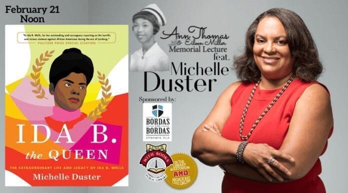 Michelle is the great-granddaughter of Civil Rights pioneer, journalist, and suffragist, Ida B. Wells. She has written, edited, or contributed to several dozen articles and over 20 books, including IDA B THE QUEEN: THE EXTRAORDINARY LIFE AND LEGACY OF IDA B WELLS and the children’s book, Ida B. Wells, Voice of Truth:Educator, Feminist, and Anti-Lynching Civil Rights Leader. The event itself is free. Both books will be available for purchase and signing at the Library event. (RSVP & Hold books)