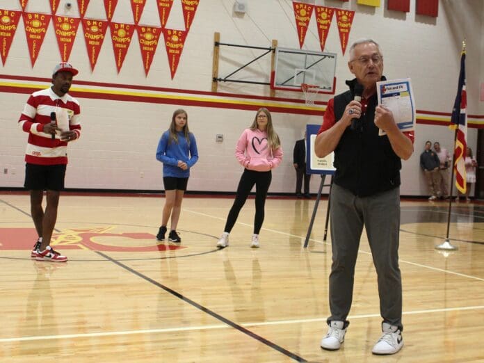 Lt. Gov. Tressel and former Ohio State University and NFL wide receiver Ted Ginn, Jr. appeared at an assembly where they spoke to an estimated 500 middle schoolers in grades 5-8. The challenge is aimed at self-improvement through exercise, nutrition and sleep and comes after President Donald Trump reinstated the Presidential Fitness Test this July. Students viewed a brief video and Tressel explained its importance, saying the goal was to get active and ultimately feel better about themselves.