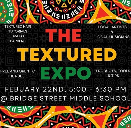The 3rd Annual Textured Hair Expo, now known as the Textured Expo, is returning to Bridge Street Middle School on Thursday evening, Feb 22nd, from 5-6:30.
