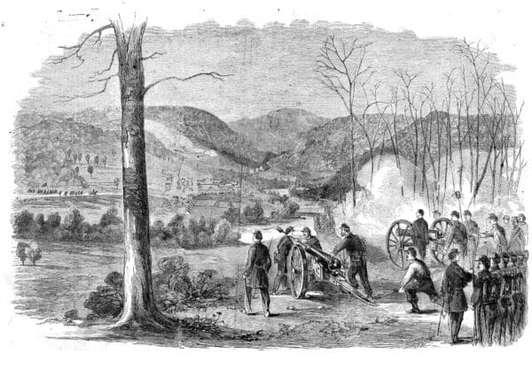On Sunday, May 26, General McClelland received word that bridges on the Baltimore and Ohio Railroad in western Virginia had been burned the previous night. The B&O was a vital link between Washington and the Midwest. It provided an easy path through the Appalachian Mountains but passed through Confederate “territory” in three places. McClellan launched an invasion into Virginia to protect against the B&O and the loyal citizens in western Virginia. [5]