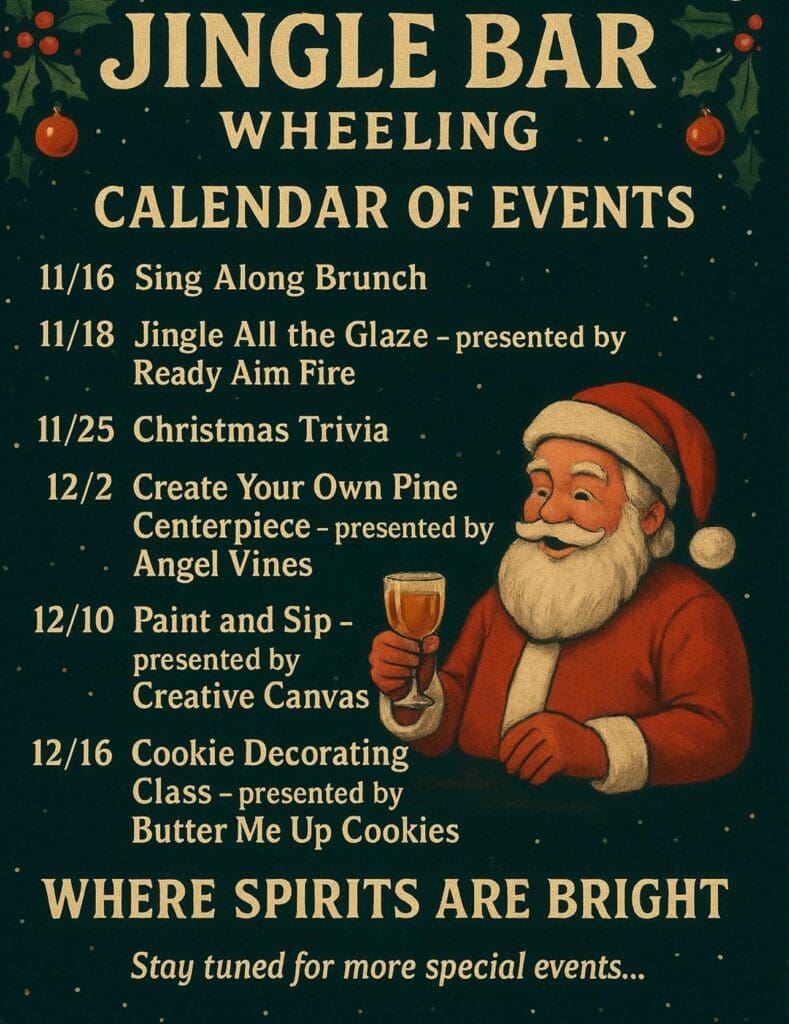 Santa Claus will be there. So will Frosty and Rudolph, and maybe even a few elves will stop by the new “Jingle Bar” in downtown Wheeling.