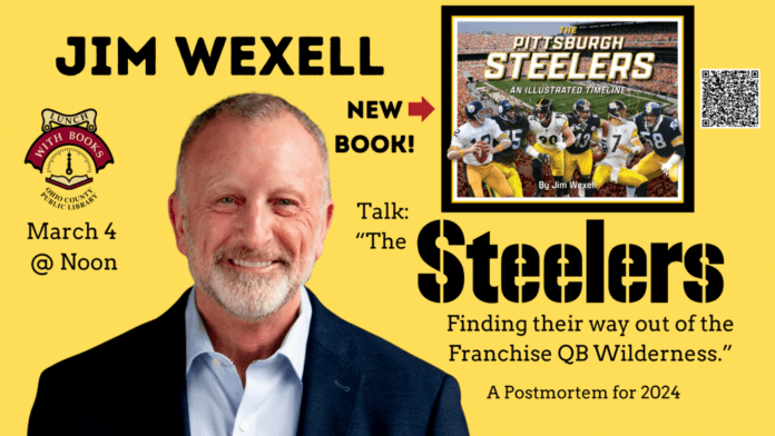 Jim will also discuss his newest publication, “The Pittsburgh “Steelers: An Illustrated Timeline,” a coffee-table book loaded with photos and well-researched vignettes and a must in the home of every Steelers fan.