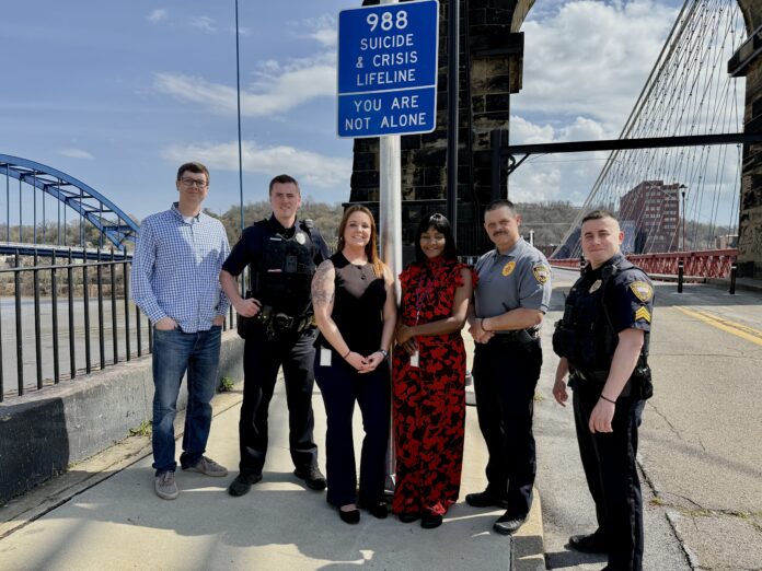 WHEELING, W.Va. — The Wheeling Police Department recently worked together with the West Virginia Division of Highways (WVDOH) to install 988 Suicide and Crisis Lifeline signs on the Wheeling Suspension Bridge and around the I-70 Fort Henry Bridge.