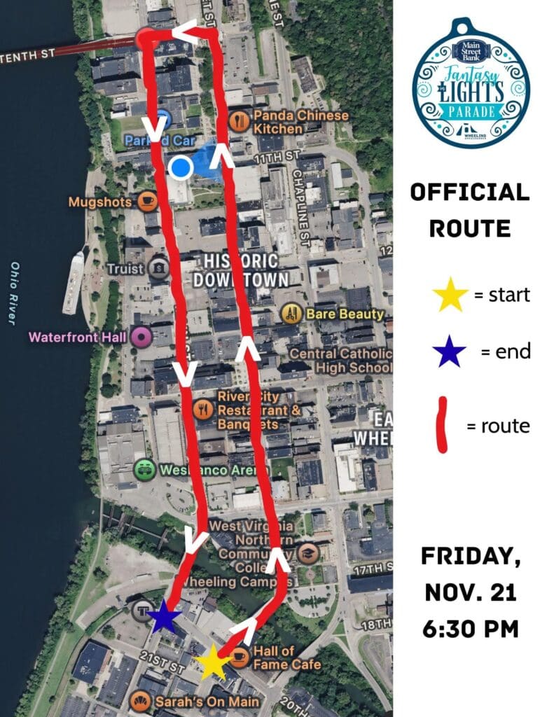 WHEELING, W.Va. – The Wheeling Police Department will implement several road closures in the Center Wheeling and downtown areas on Friday, November 21, for the 40th Annual Fantasy in Lights Christmas Parade.